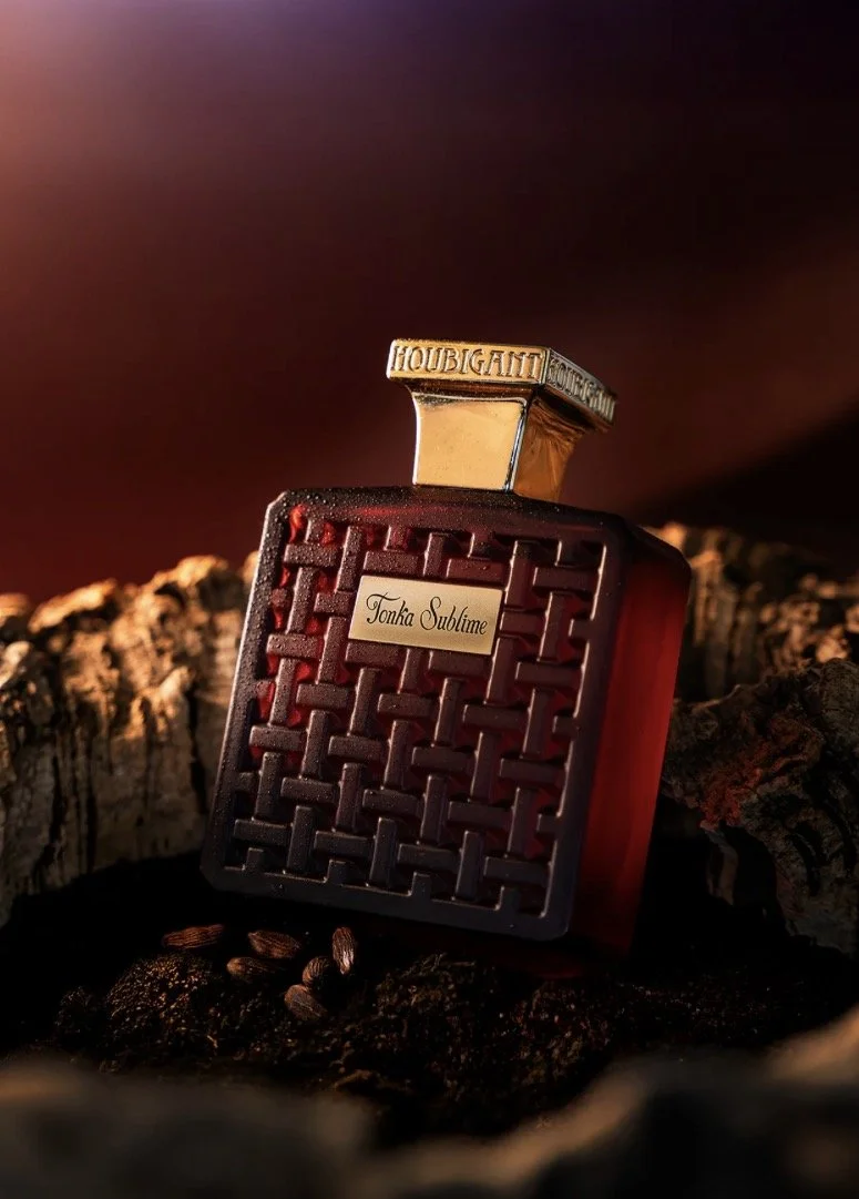 Top notes are Almond, Star Anise, Mirabelle Plum and Neroli; middle notes are Tonka Bean, Davana and Jasmine; base notes are Sandalwood and Amber.